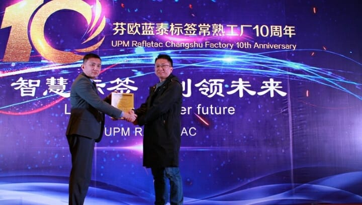 UPM RAFLATAC Die Recyclinglösung RafCycle ist nun auch in China verfügbar. Der Service wurde am 6. Dezember 2017 in Changshu/PRC im Rahmen einer Kundenveranstaltung (10 Jahre UPM Raflatac-Werk in Changshu) gestartet. Das erste Partnerzertifikat in China ging an Hangzhou Changli, einen 2010 gegründeten Etikettendrucker.
