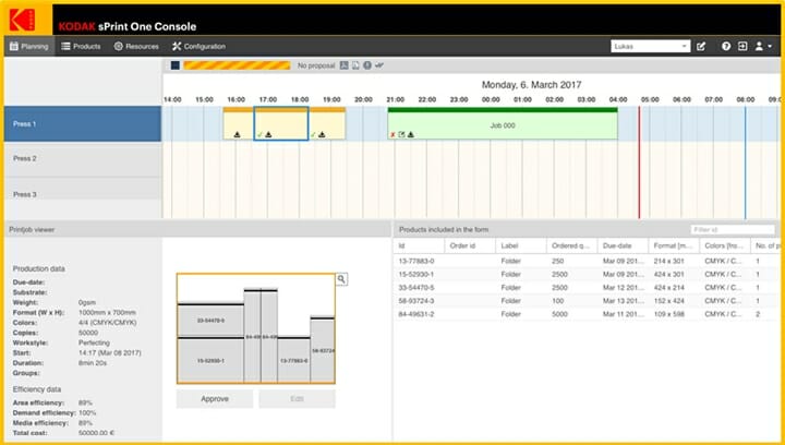 »Die neue dynamische Druckplanung der Prinergy Cloud Services versetzt Druckdienstleister in die Lage, schnell und genau zu planen, Änderungsanforderungen umzusetzen und mehr Aufträge mit denselben Ressourcen zu produzieren. Da potenzielle menschliche Fehler im Projektplanungsprozess ausgeschaltet werden, kann dieses Angebot 40% der Personalkosten pro Projekt senken, die Agilität eines Betriebes drastisch erhöhen und zur Aufrechterhaltung der Wettbewerbsfähigkeit von Unternehmen beitragen«, so Allan Brown, Vice President und General Manager von Kodaks Unified Workflow Solutions.
