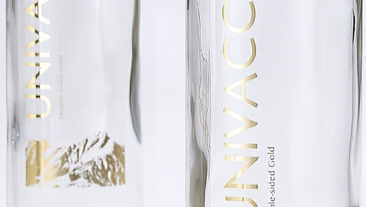 UNITED TRANSFER TECHNOLOGIES Cold Transfer-Narrow-Web-Metallic-CF4.6DU ist ein doppelseitiges Kalttransferprodukt mit goldenem Rückseiten-Effekt, das speziell für transparente Untergründe im No-Label-Look mit hervorragendem Glanz auf beiden Seiten entwickelt wurde.