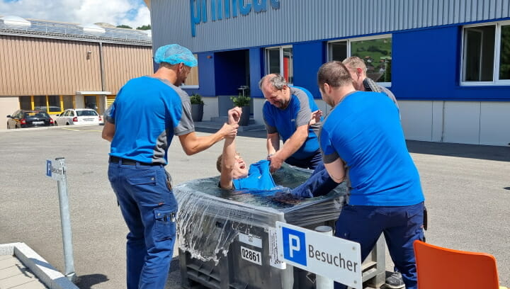 PRIMCUT Das Gautschen ist eine alte Tradition in der Druckbranche. Nach erfolgreich abgeschlossener Lehre, wird der Lernende gepackt, ins Wasser getaucht und somit von den Lehr-Sünden freigewaschen; anschliessend wird der traditionelle Gautschbrief als Urkunde überreicht und angestossen.