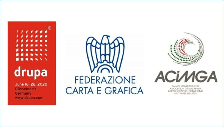 Die Kooperation mit der Federazione Carta e Grafica flankiert zudem die langjährig erfolgreiche Arbeit von Honegger Gaspare Srl, der offiziellen italienischen Auslandsvertretung der Messe Düsseldorf. Somit wird Honegger Gaspare auch weiterhin der Hauptansprechpartner für italienische Aussteller und Besucher sein – sei es zur drupa 2020 in Deutschland oder für eine der weltweiten Satellitenveranstaltungen. (Grafik: drupa/FCC/Acimga)