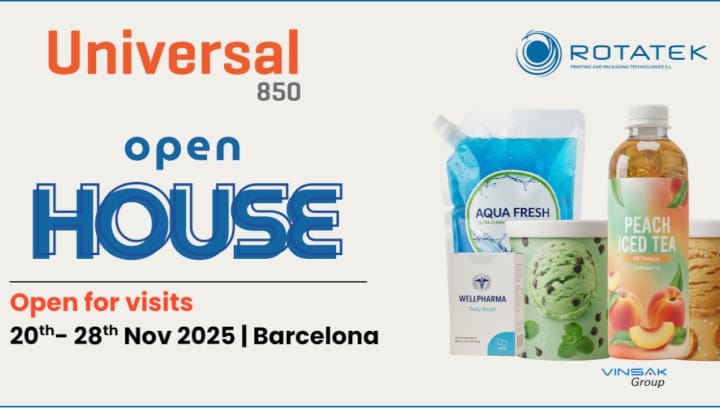ROTATEK Interessenten sind herzlich eingeladen zum Rotatek Universal 850 Open House – 20.–28. November 2025, Martorelles bei Barcelona/E – eine exklusive Gelegenheit, neueste Lösungen für die In-Mould-Etikettenproduktion, Shrink Sleeves, flexible Verpackungen, Faltschachteln, Pharmabeilagen und den Akzidenzdruck zu erleben.