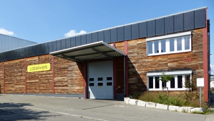 Zweierlei Ungewöhnliches fällt auf, wenn man das Firmengebäude der Labelwerk GmbH in Ostfildern (OT Scharnhausen) betritt: Der Werkstoff Holz, aus dem die Außenfassade gestaltet ist, setzt sich konsequent im Innern fort und man erfährt, dass nur dort auf Holz verzichtet wurde, wo es aus Brandschutzgründen erforderlich war. Die Wände nicht nur in den Fluren und Büros, sondern auch in der Produktionshalle des im Jahr 2010 errichteten Baus bieten außerdem Platz für die umfangreiche Grieshaber-Sammlung des Inhabers und Geschäftsführers.