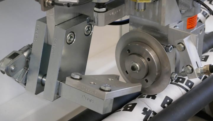 Die Schneidleistung – abhängig von Hülsenqualität und Wandung des Rohres – wird mit ca. 25 Schnitten/min, ø 76 x 6 mm, 50 mm breit angegeben. (Bildquelle: Brodbeck)