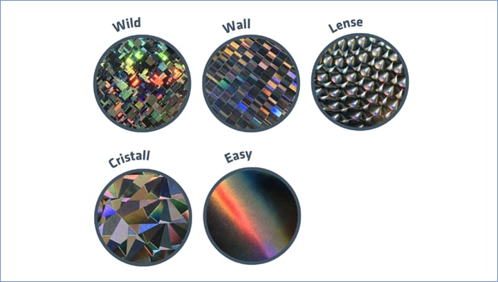 Mit der Möglichkeit, dies auf Ihren Geräten zu drucken, haben Sie maximale Flexibilität hinsichtlich Losgröße und Design. Derzeit sind bei Helvetikett fünf Hologramm-Effekte verfügbar.
