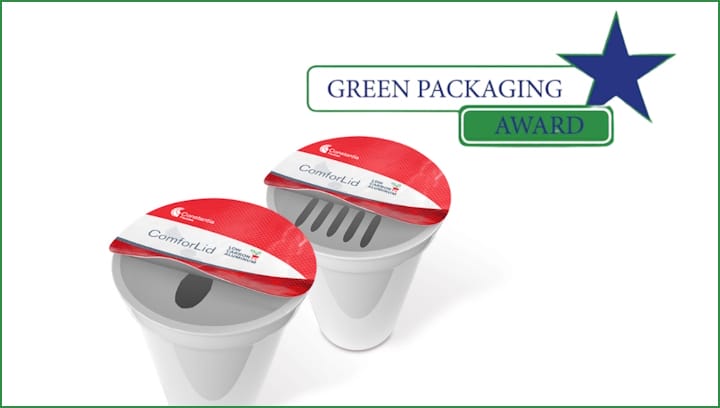 ComforLid ist Teil des Ecolutions-Portfolios von Constantia Flexibles. Es ersetzt herkömmliche Kunststoff-Stülpdeckel und Strohhalme durch einen patentierten Deckel mit einer abziehbaren Aluminiumoberfläche und einer coextrudierten Kunststoffschicht.