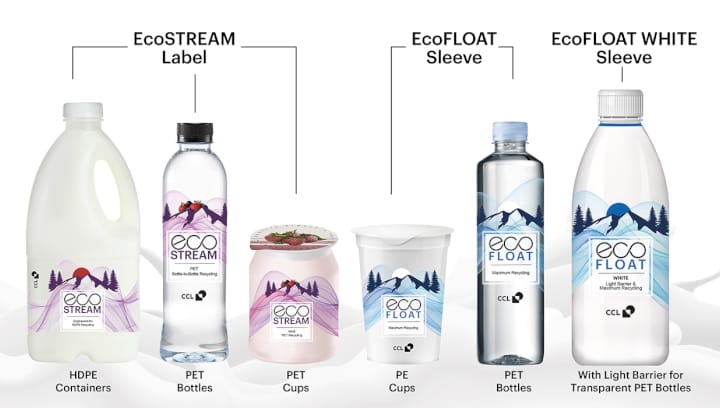- EcoStream HDPE: Ein selbstklebendes Etikett für HDPE-Behälter (z.B. Milchflaschen), das sich während des Recyclingprozesses sauber ablösen lässt und den Richtlinien für recyclinggerechtes Design entspricht.