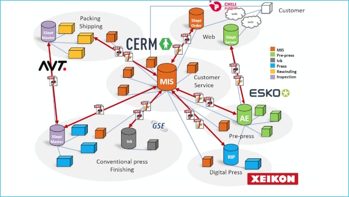 Gemeinsam mit Cerm, einem Anbieter von Softwarelösungen für Schmalbahn-Druckereien, haben wir eine Standardschnittstelle entwickelt. Sie ermöglicht die Integration der Farbbedarfsverwaltung in die Vorausplanungs- und Terminierungssysteme der Etikettendruckerei.