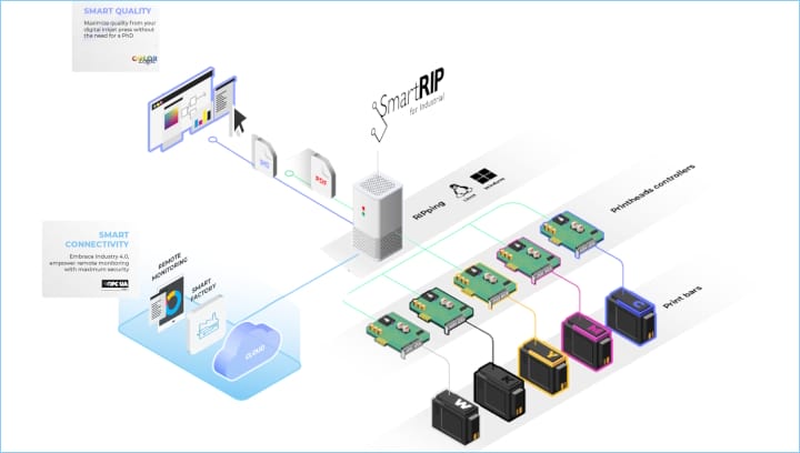 »Mit SmartRIP haben wir die preisgekrönte, bewährte Technologie von SmartDFE, die in High-End-Digitaldruckmaschinen zum Einsatz kommt, für ein breiteres Spektrum industrieller Anwendungen optimiert«, kommentierte Geschäftsführer Justin Bailey. »OEMs und Integratoren können nun schneller, mit weniger Aufwand und zu geringeren Kosten eine außergewöhnliche Druckqualität liefern.«