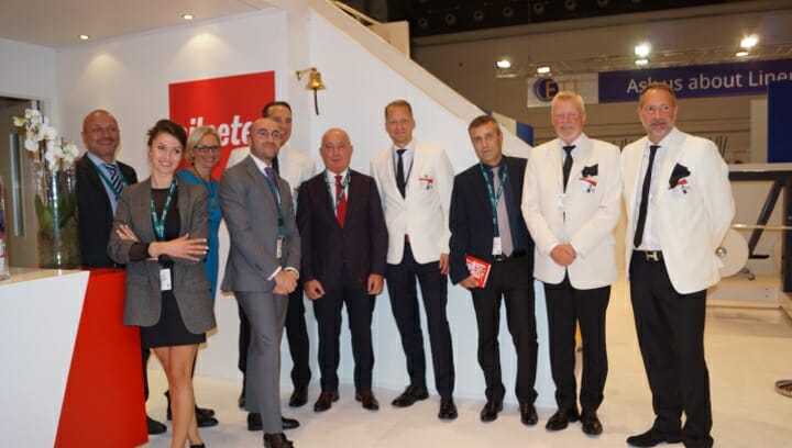 NUCERIA Die italienische Etikettengruppe liess die bekannte Glocke auf dem Nilpeter-Stand klingeln: Geordert wurde eine Panorama Hybrid mit Fünffarben Inkjet in Kombination mit Flexo- und Siebdruck, Folienveredelung (kalt) und Schnellwechsel-Stanze.