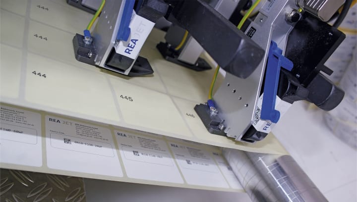 Die Etikettiertechnik von REA Label unterstützt mit maximaler Geschwindigkeit und variablen Layouts bei industriellen Kennzeichnungsaufgaben – inklusive professioneller Softwarelösungen für den Etikettendruck. Standardprogramme von Loftware NiceLabel und Codesoft von Teklynx bilden die Basis und können nach individuellen Kundenanforderungen flexibel angepasst werden. Auf der Messe zu sehen: der Farbetikettendrucker REA Label ColorJet 2 für den Einsatz in Produktion, Logistik und Automatisierung. Im hochwertigen 1:1-Vollfarbdruck erstellt und appliziert er einzelne Etiketten oder Serien kleiner und mittlerer Mengen in höchster Auflösung von bis zu 1200 dpi und mit einer Druckbreite von bis zu 210 mm. Das macht ihn zu einer preiswerten und praktischen Alternative zu externen Druckereien. (Bildquelle: REA)