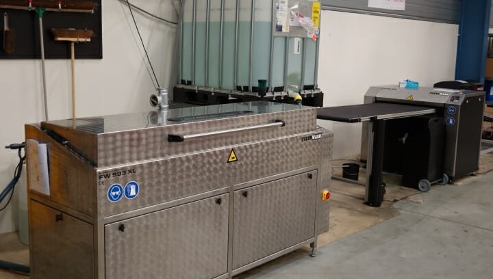 Die Liste der bei Desmedt installierten Flexo Wash-Maschinen umfasst eine PK 200 WR TrolleyLoad zur Reinigung von Maschinenteilen mit einem kleinen Wagen für UV-Farben, und eine Teilewaschanlage PK ECO Maxi WR für wasserbasierte Farben. Desweiteren gibt eine FW 993 XL für die Reinigung von bis zu neun Walzen pro Waschgang, eine PK 92 für die Reinigung von Rotationssieben und eine PW 82 WR für Druckplatten. Die PK Filtrationseinheit kann sowohl für die PK 200 als auch für die PW 82 Maschinen verwendet werden.