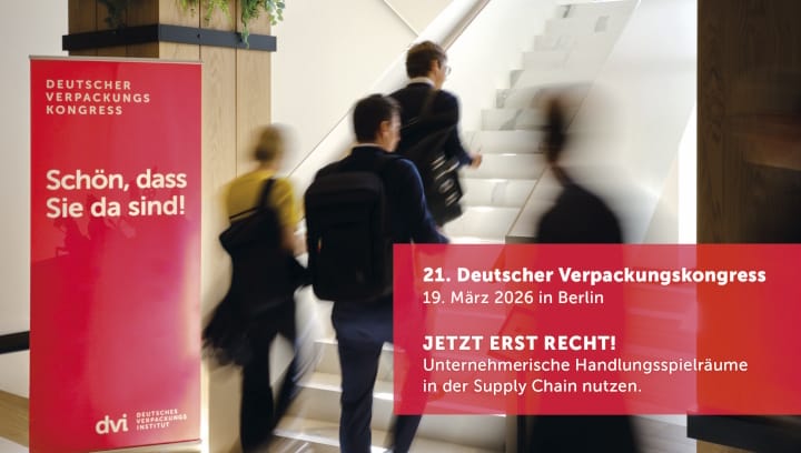 DVI Das Deutsche Verpackungsinstitut e. V. lädt Entscheiderinnen und Entscheider aus Industrie, Handel und Marken am 19. März 2026 zum 21. Deutschen Verpackungskongress nach Berlin ein. Unter dem Motto »Jetzt erst recht! Unternehmerische Handlungsspielräume in der Supply Chain nutzen.« adressiert der Netzwerk-Gipfel Strategien und Wege, um in komplexen Situationen und schwierigen Märkten wirtschaftlich erfolgreich und verantwortungsvoll Zukunft zu gestalten. Frühbuchende profitieren bis zum 19. Januar 2026 von einer substanziellen Ermäßigung.