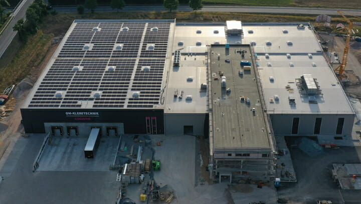 Mit ansprechender Architektur präsentiert sich OM-Klebetechnik offiziell seit dem 1. Januar 2020 in Woffenbach. Der Neubau war durch das stetige Wachstum der letzten Jahre nötig geworden. Auf etwa 23.000 m² Fläche ist auch in Zukunft ausreichend Platz, um vielfältige, den industriellen Anforderungen gerecht werdende Produkte herzustellen.