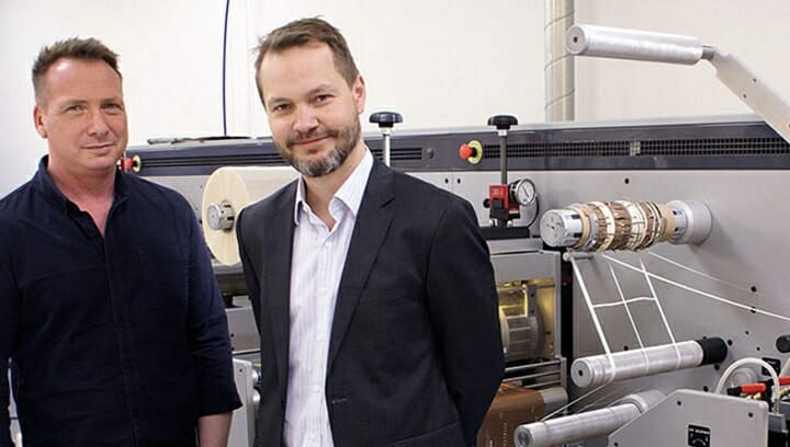 Das Foto zeigt Thomas Nielsen, CEO bei Ikonprint (links) neben Uffe Nielsen (CEO bei GM). (Foto: Grafisk Maskinfabrik)