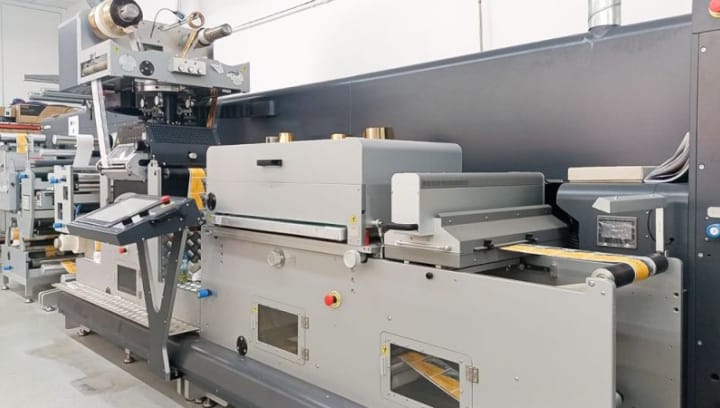 »Unsere neue DC350Flex+ ist eine modulare Veredelungslinie der Spitzenklasse. Sie bietet optimale schnelle und automatisierte Veredelung. Spot- und Volllackierung, Mehrlagenetiketten, Folienheißprägung, holografische Folie, Siebdruck sowie superschnelles Stanzen und Schneiden sind ohne Verzögerungen möglich. Die steigende Nachfrage nach Premium- und Luxusetiketten von Markenartiklern wird durch bessere, schnellere und vielseitigere Lösungen gedeckt.« (Bildquelle: Lino)