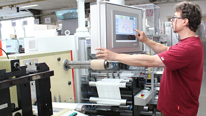 Eine Herausforderung für Interket war der variable Einsatz an verschiedenen Flexodruckmaschinen. Dies wurde möglich durch eine gute Aggregatverwaltung in CERM (ERP Software für die Etikettenindustrie) und durch ein am Fußboden eingearbeitetes Vorrichtungssystem, durch das der Kleinroller, aber auch alle anderen Inline-Aggregate, flexibel an fast allen Maschinen installierbar ist.